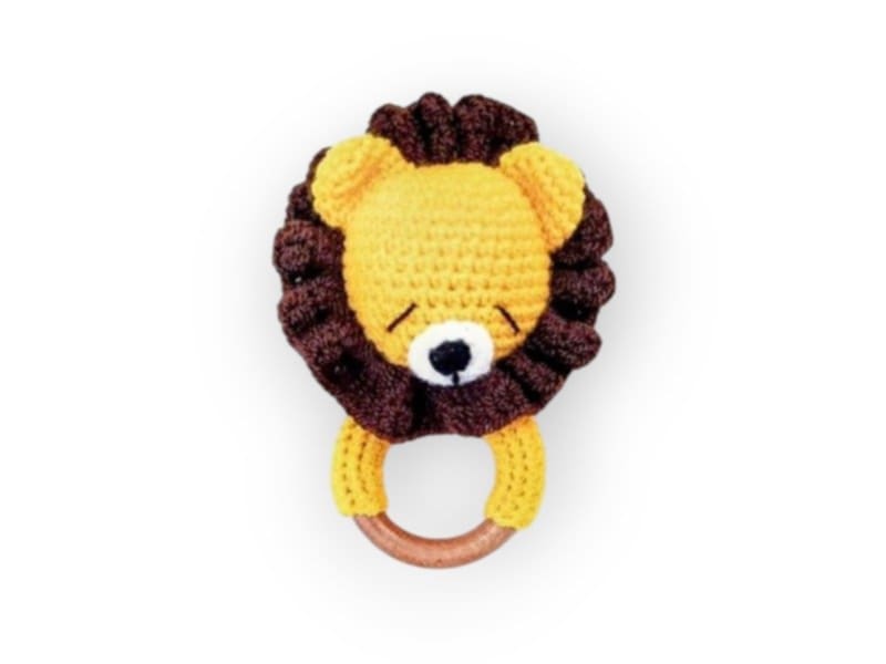 Με μασητικό κρίκο φτιαγμένη απο υποαλλεργικό νήμα 55% βαμβακερό και 45% ακρυλικό, 12 εκατοστά ύψος.