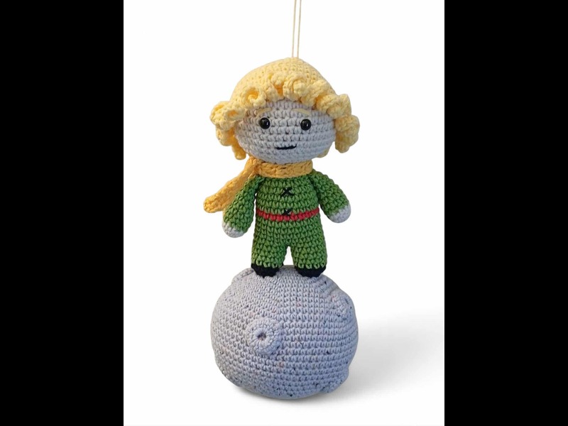 Κρεμαστό διακοσμητικό δωματίου “Μικρός Πρίγκιπας”, πλεγμένο με υποαλλεργικό νήμα 55%βαμβάκι και 45% ακρυλικό.Πλένεται και στο πλυντήριο στους 30 βαθμούς.Περίπου 32 εκατοστά ύψος.