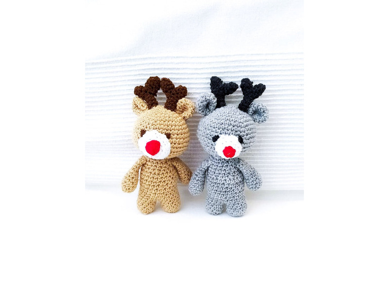 Μίνι Τάρανδος σε γκρι χρώμα φτιαγμένος απο υποαλλεργικό νήμα 55%βαμβακερό και 45%ακρυλικό.Εχει ύψος 13 εκατοστά περίπου και πλένεται στο χέρι ή στο πλυντήριο στους 30 βαθμούς.